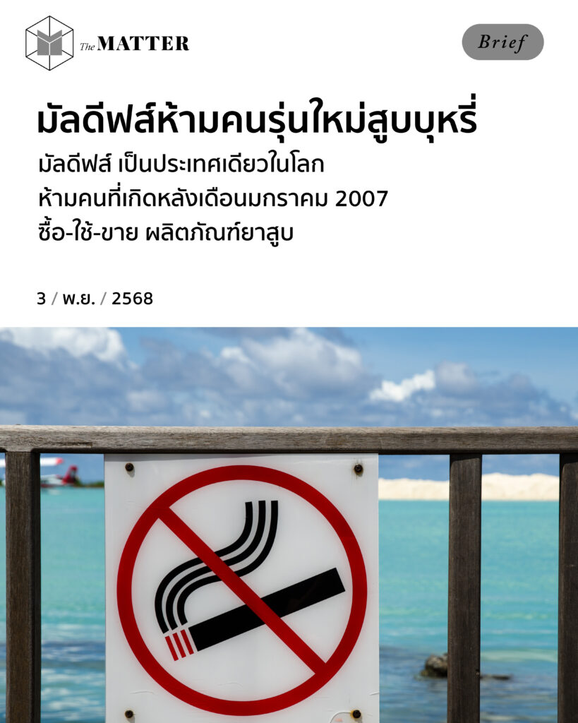 กลายเป็นประเทศเดียวในโลกที่ห้ามคนรุ่นใหม่ทั้งรุ่นสูบบุหรี่ โดยเมื่อวันเสาร์ที่ผ่านมา (1 พฤศจิกายน 2025) กฎหมาย “ห้ามคนรุ่นใหม่สูบบุหรี่” ของมัลดีฟส์ เริ่มมีผลบังคับใช้อย่างเป็นทางการ