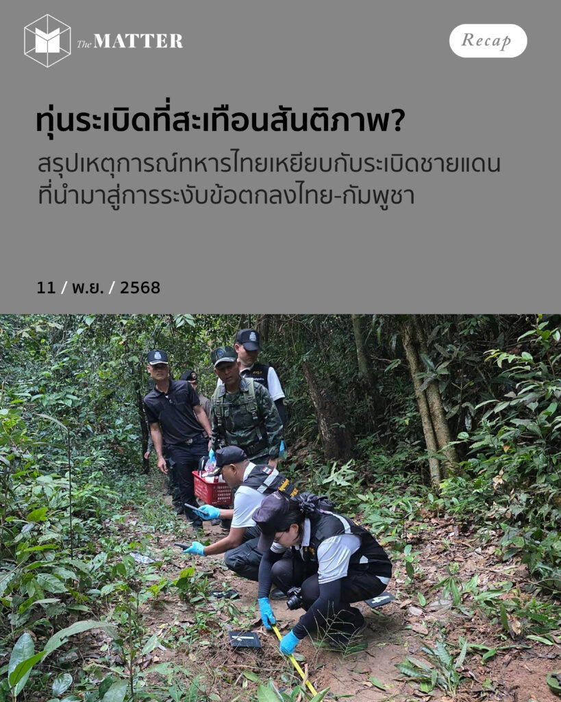 ย้อนกลับไปเมื่อวันที่ 26 ตุลาคมที่ผ่านมา ประเทศไทยและกัมพูชาได้ลงนามใน ‘ข้อตกลงไทย-กัมพูชา’ แต่ว่าเมื่อวานนี้ ทหารไทยได้เหยียบกับระเบิดอีกครั้ง ที่บริเวณใกล้กับปราสาทเขาพระวิหาร นำมาซึ่งการให้สัมภาษณ์ ‘ระงับ’ ข้อตกลงดังกล่าวจากนายกฯ เหตุการณ์นี้เกิดอะไรขึ้นบ้าง The MATTER ขอสรุปเหตุการณ์ให้ทุกคนได้ติดตามไปพร้อมๆ กัน