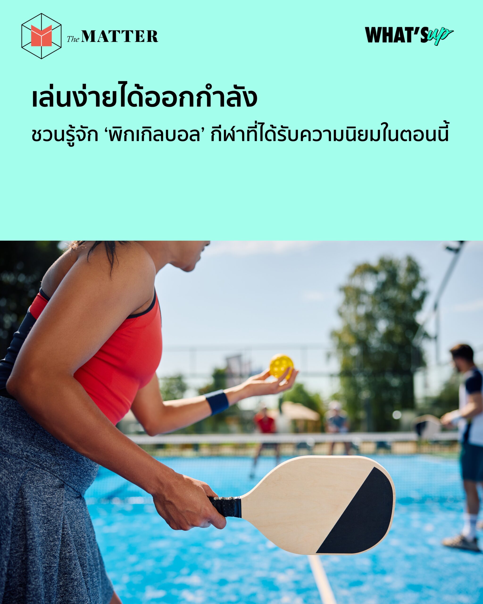 หากใครยังไม่รู้จัก เราขอแนะนำกีฬาใหม่นี้กันสักนิด พิกเกิลบอลถือเป็นกีฬาที่รวมของดีของกีฬาทั้ง 3 ชนิดเข้าไว้ด้วยกัน ไม่ว่าจะเป็นความสนุกของการตีโต้ข้ามเน็ตแบบเทนนิส คอร์ทกะทัดรัดเหมือนแบดมินตัน และสุดท้ายคือใช้แผ่นแพดเดิล ไม่ใช่ไม้ตาข่าย และใช้ลูกพลาสติกที่มีรูพรุนคล้ายกับปิงปอง ข้อดีเหล่านี้นอกจากง่ายต่อผู้เล่นหน้าใหม่แล้ว ยังถือเป็นกีฬาที่ค่อนข้างปลอดภัย เพราะลดความเสี่ยงต่อการบาดเจ็บจากแรงกระแทก นั่นจึงทำให้กีฬาชนิดนี้ครองใจคนทุกวัย ไม่ว่าจะเด็กหรือคนสูงอายุก็สามารถเล่นกีฬานี้ด้วยกันได้ไม่ยาก