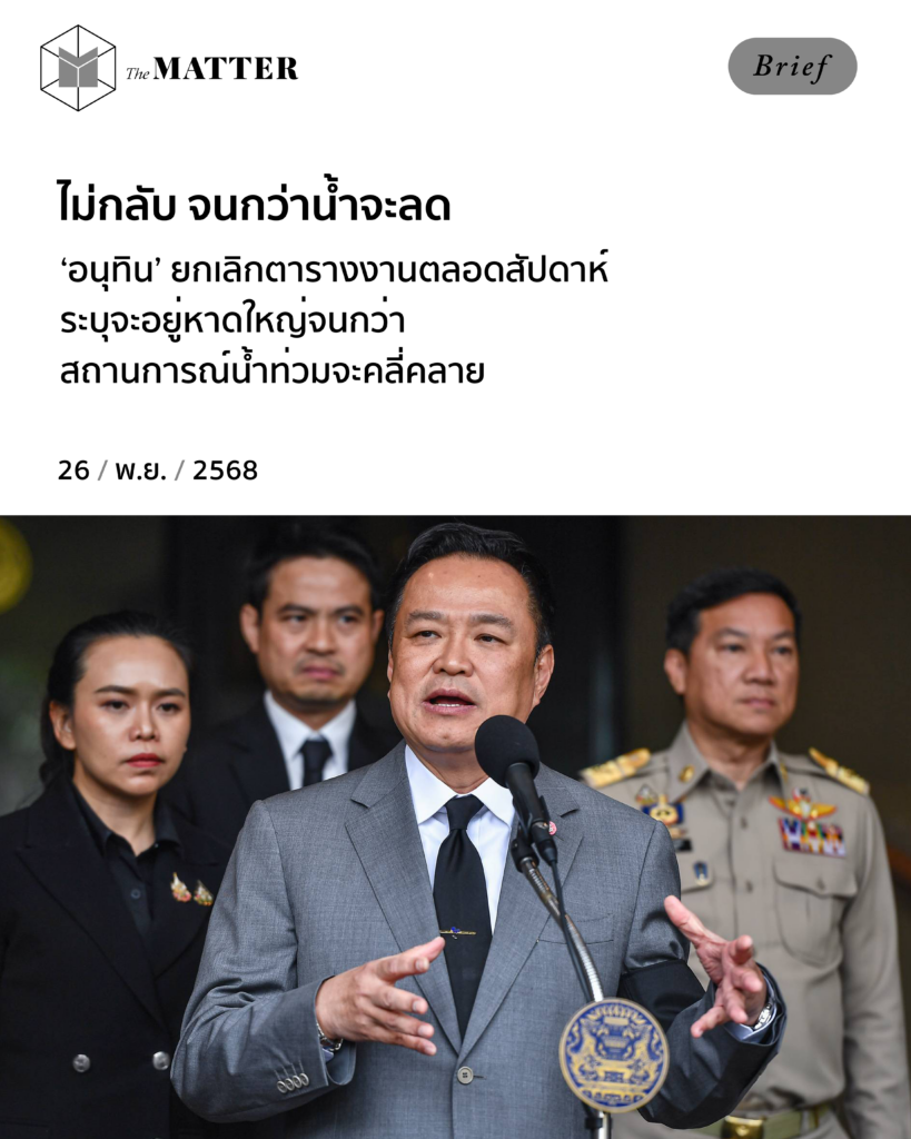 นอกจากนี้ ยังมีรายงานว่า อนุทินได้ยกเลิกนัดหมายวาระงานล่วงหน้าตลอดสัปดาห์นี้ เพื่อติดตามสถาการณ์อุทกภัยอย่างใกล้ชิด