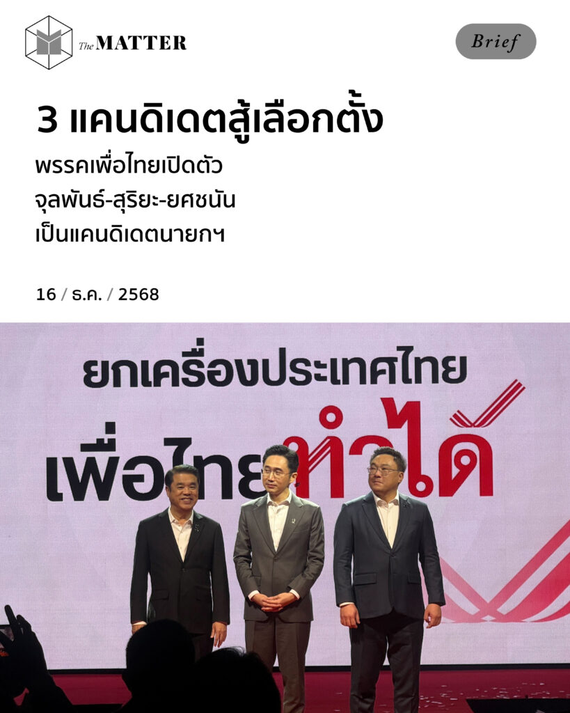 วันนี้ (16 ธันวาคม) พรรคเพื่อไทยเปิดตัวรายชื่อบุคคลที่ได้รับการเสนอเป็นแคนดิเดตนายกรัฐมนตรี จำนวน 3 คน อย่างเป็นทางการ ในงาน “ยกเครื่องประเทศไทย เพื่อไทยทำได้” ดังนี้