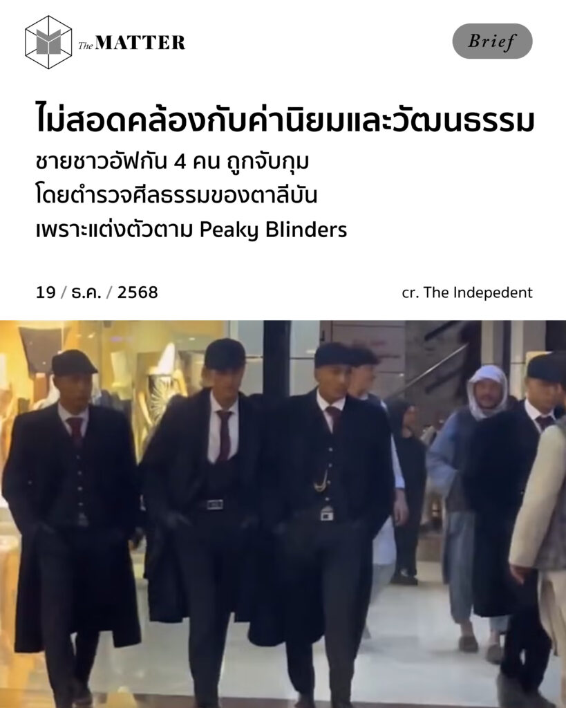 ไม่นานมานี้ สื่อต่างประเทศหลายแห่งรายงานว่า ชาย 4 คนถูกตาลีบันจับกุมในอัฟกานิสถาน ด้วยข้อหาแต่งตัวตามตัวละครจากซีรีส์อังกฤษเรื่อง ‘Peaky Blinders’ โดยระบุว่าเป็นการละเมิด “ค่านิยมอิสลามและวัฒนธรรมอัฟกานิสถาน”