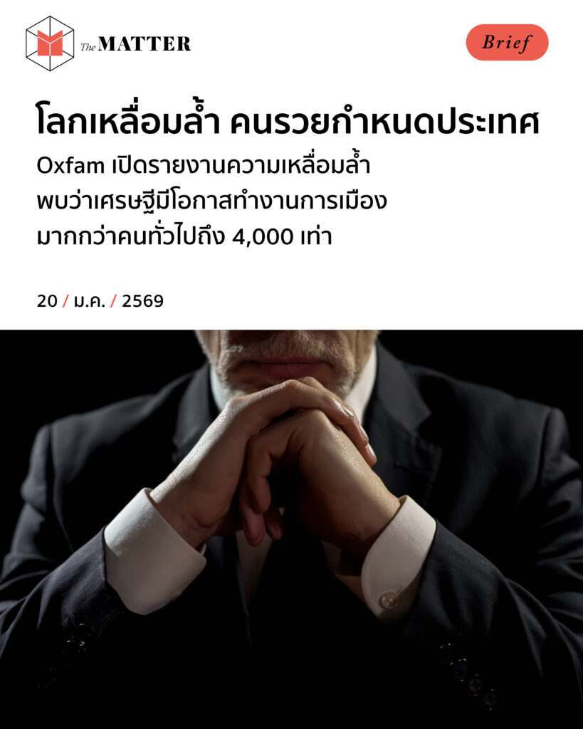 ไม่นานมานี้ รายงานความเหลื่อมล้ำ (Resisting the Rule of the Rich: Protecting Freedom from Billionaire Power) ประจำปีของอ็อกซ์แฟม (Oxfam) หรือกลุ่มองค์กรที่ทำงานเพื่อลดระดับความยากจนทั่วโลกได้เผยถึง ‘อันตราย’ ของความเหลื่อมล้ำทางเศรษฐกิจ ที่อาจกำลังคืบคลานมาถึงวงการการเมือง