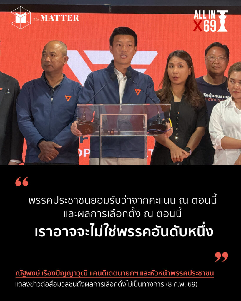 วันนี้ (8 กุมภาพันธ์) ณัฐพงษ์ เรืองปัญญาวุฒิ แคนดิเดตนายกฯ และหัวหน้าพรรคประชาชน แถลงข่าวต่อสื่อมวลชนถึงผลการเลือกตั้งไม่เป็นทางการ โดยขอบคุณพี่น้องประชาชนที่ออกมาใช้สิทธิใช้เสียงเลือกตั้งและประชามติ
