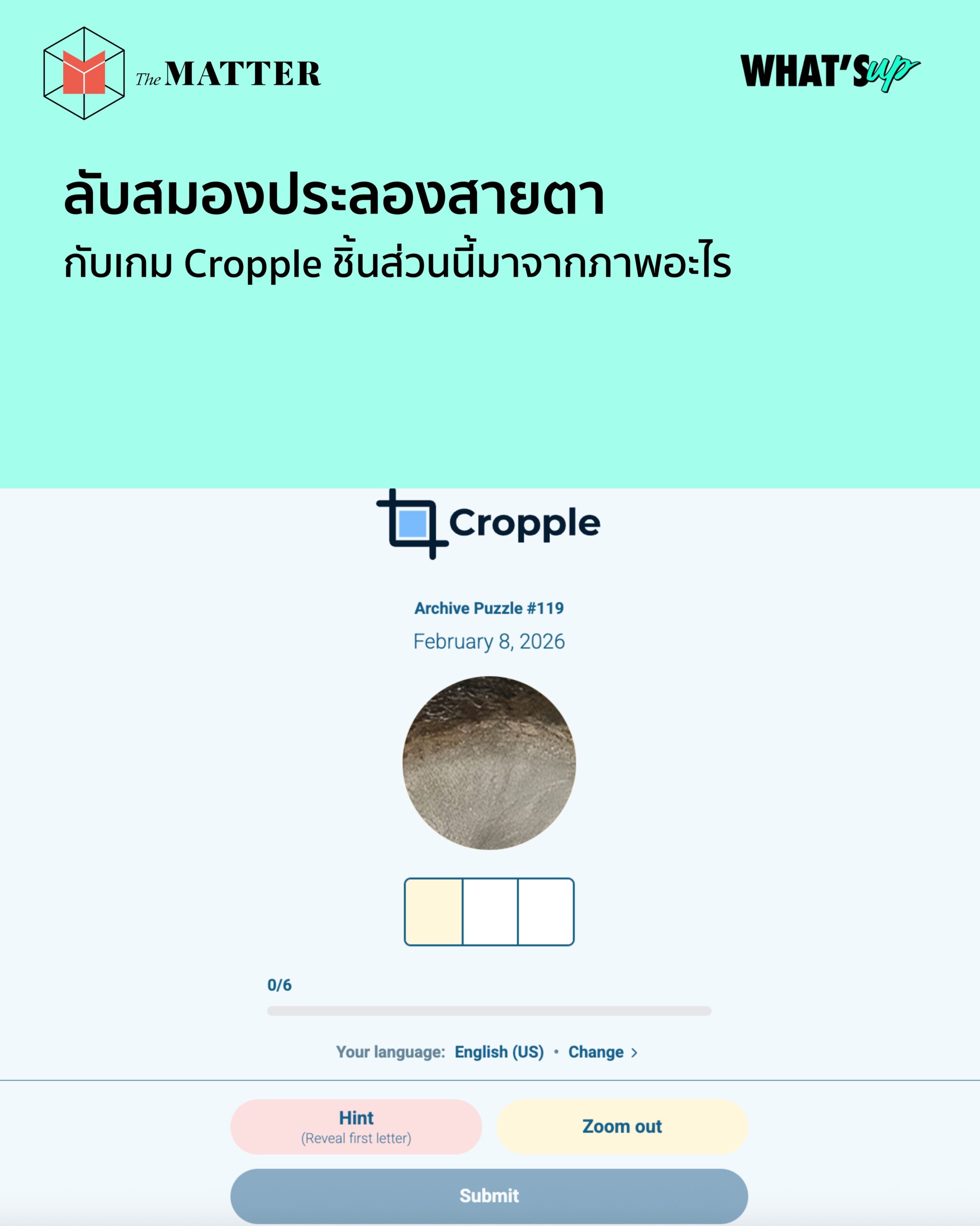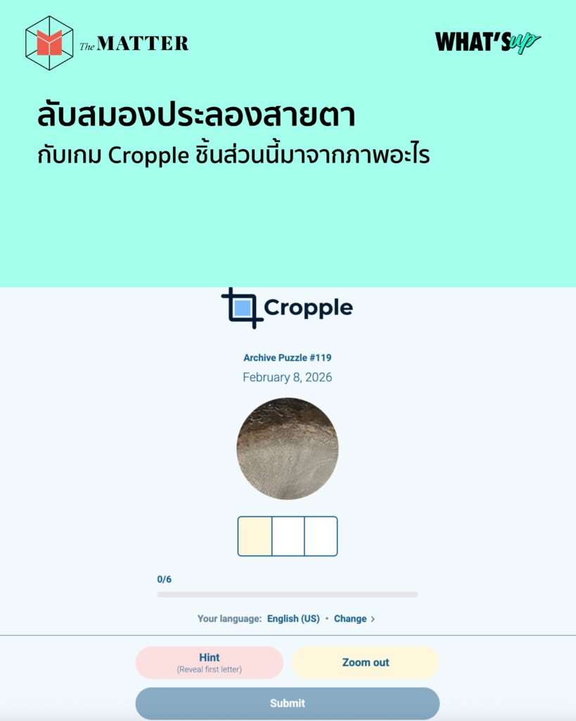 ใครคิดว่าตัวเองช่างสังเกต ความจำดี คลังศัพท์ในหัวมีไม่จำกัด มาลองเจอกันได้ใน Cropple เกมที่ชวนทุกคนมาทายว่าชิ้นส่วนเล็กๆ ในภาพนี้มาจากอะไรกัน