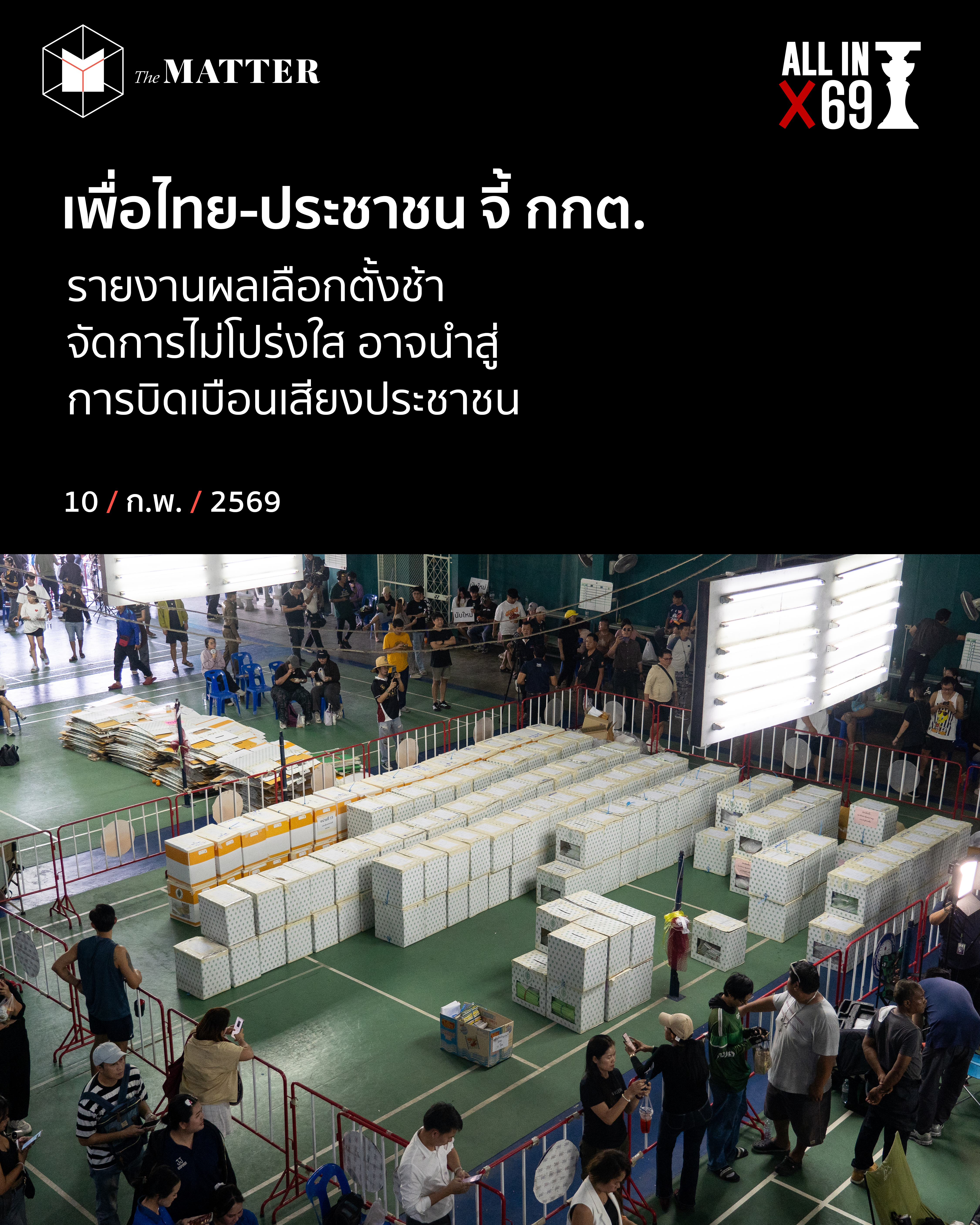 ทั้งนี้ พรรคประชาชนจะทำการแถลงข่าวเรื่องการจัดการเลือกตั้ง 69 ของ กกต. โดยเรียกร้องให้เปิดเผยข้อมูลรายหน่วยทั่วประเทศ การดำเนินการขอให้นับคะแนนใหม่ในเขตที่มีข้อพิรุธ และการเปิดตัวระบบรับเรื่องร้องเรียนของพรรค ณ ชั้น 7 อาคารอนาคตใหม่ เวลา 16:00 น.