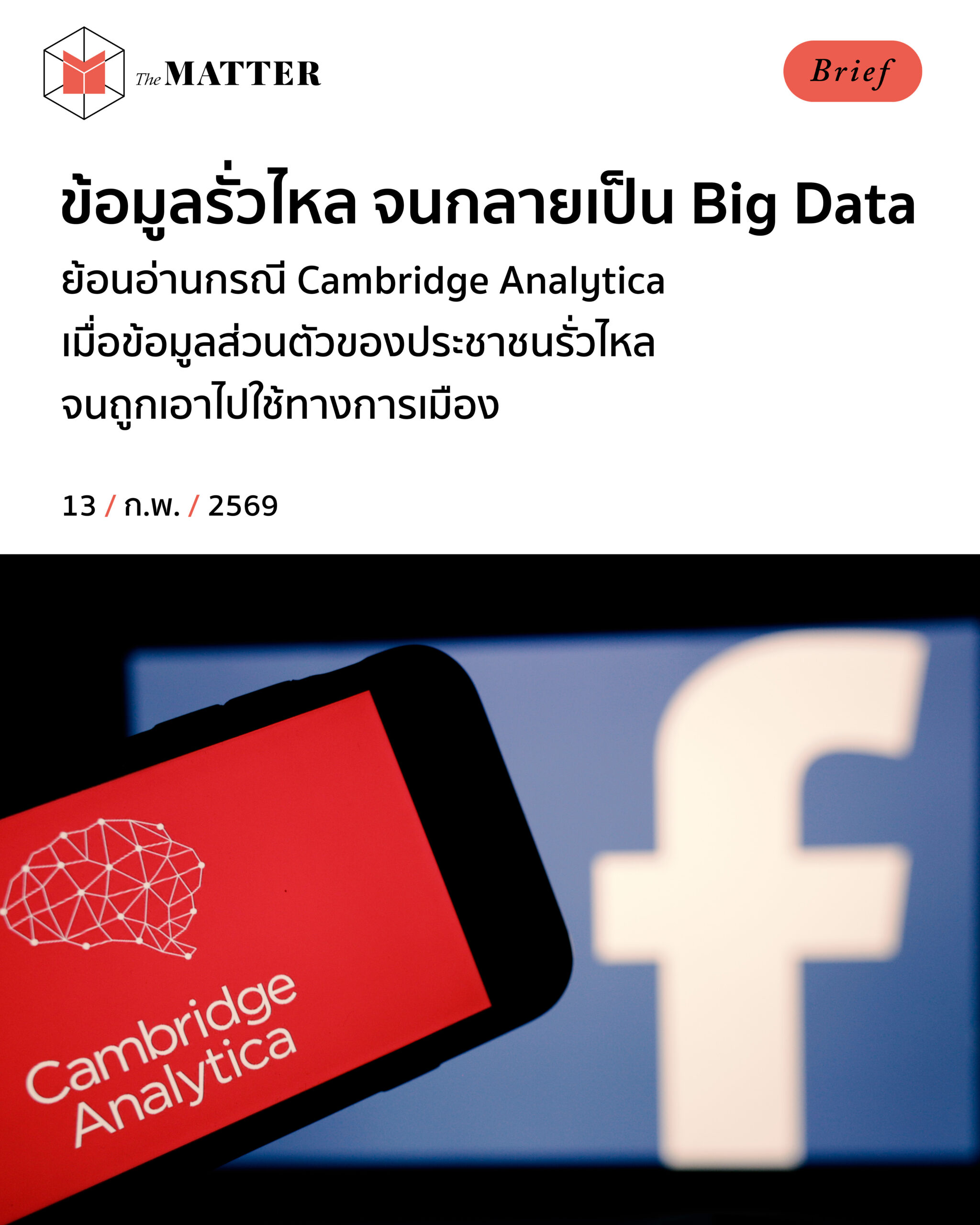 วันที่สังคมไทยกำลังตั้งคำถามกับ #บาร์โค้ด บนบัตรเลือกตั้ง วันนี้เราชวนย้อนดูกรณี Cambridge Analytica คดีอื้อฉาวที่ทำให้ Facebook ถูกรัฐบาลสหรัฐฯ สั่งปรับเงินกว่า 5,000 ล้านดอลลาร์สหรัฐ (ราว 150,000 ล้านบาท) เพราะทำข้อมูลส่วนตัวของประชาชนรั่วไหล