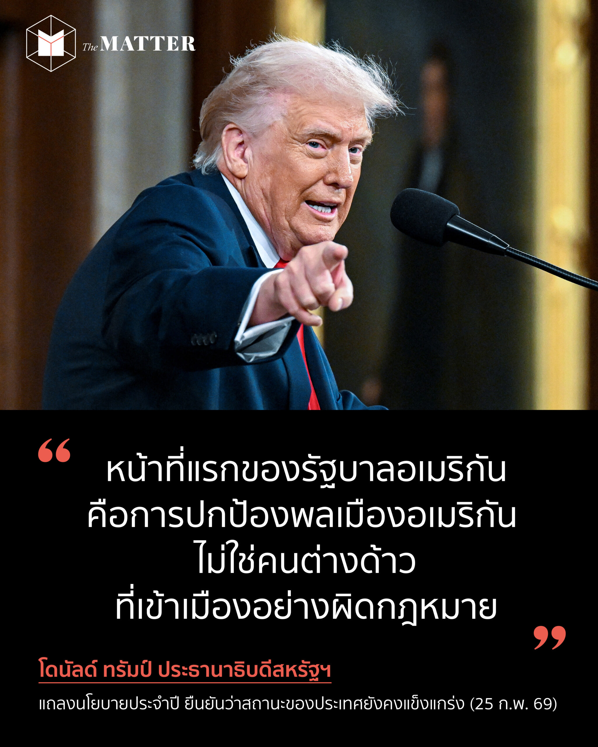 เมื่อวานนี้ (25 กุมภาพันธ์) ประธานาธิบดีโดนัลด์ ทรัมป์ กล่าวสุนทรพจน์เพื่อแถลงนโยบายประจำปี (State of the Union) ที่อาคารรัฐสภาสหรัฐฯ พร้อมยืนยันต่อชาวอเมริกันว่า สถานะของประเทศยังคงแข็งแกร่ง