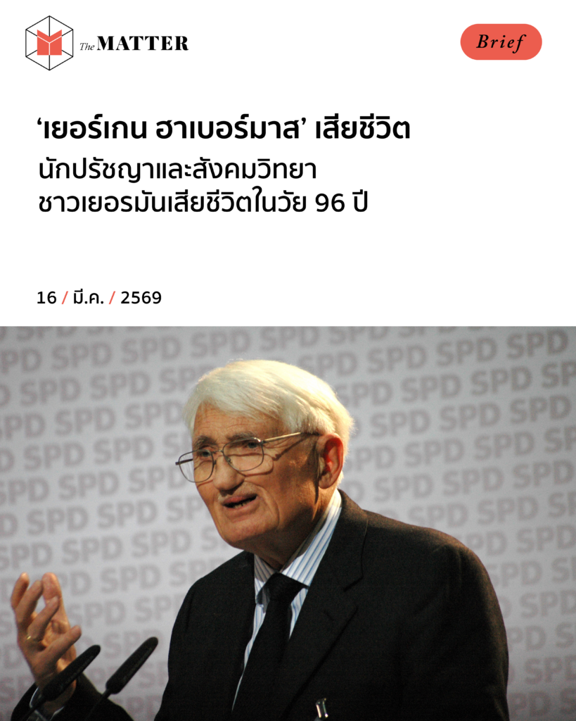 เยอร์เกน ฮาเบอร์มาส (Jürgen Habermas) นักปรัชญาและนักคิดทางสังคมและการเมืองที่มีอิทธิพลอย่างมากในเยอรมนีหลังสงครามโลกครั้งที่ 2 เสียชีวิตแล้วด้วยวัย 96 ปี เมื่อวันที่ 14 มีนาคมที่ผ่านมา ณ เมืองชตาร์นแบร์ค ประเทศเยอรมนี