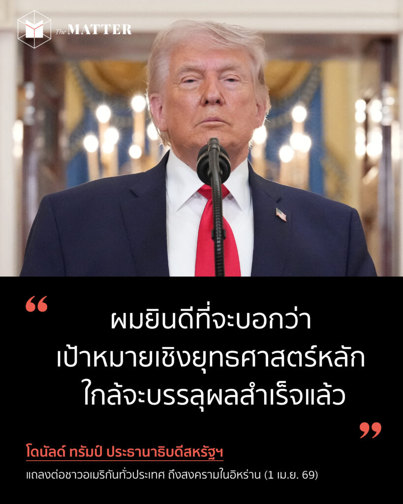 เมื่อคืนที่ผ่านมา โดนัลด์ ทรัมป์ ประธานาธิบดีสหรัฐฯ ใช้เวลาราว 19 นาที เพื่อแถลงต่อชาวอเมริกันทั่วประเทศ ถึงสงครามในอิหร่านที่กำลังสร้างความผันผวนต่อราคาน้ำมันทั่วโลก