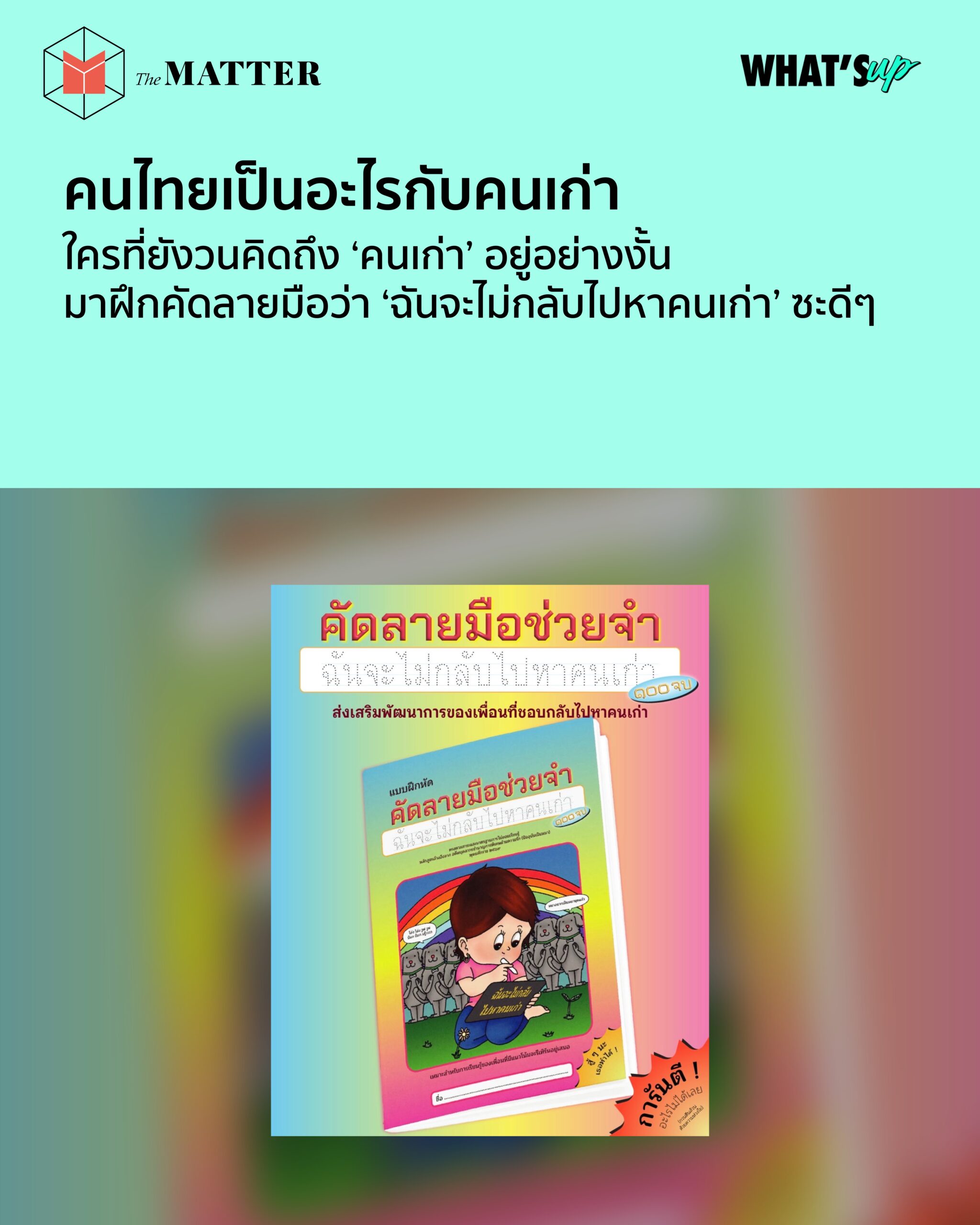 บอกยังไงก็ไม่ฟัง งั้นคงต้องให้เพื่อนเรียนรู้ด้วยตัวเอง เอาไปเลย ‘แบบฝึกหัดคัดลายมือช่วยจำ: ฉันจะไม่กลับไปหาคนเก่า’ แบบฝึกหัดแนวพัฒนาตัวเอง เหมาะอย่างยิ่งสำหรับเพื่อนที่มีแนวโน้มกลับไปหาคนเก่าอยู่เสมอ