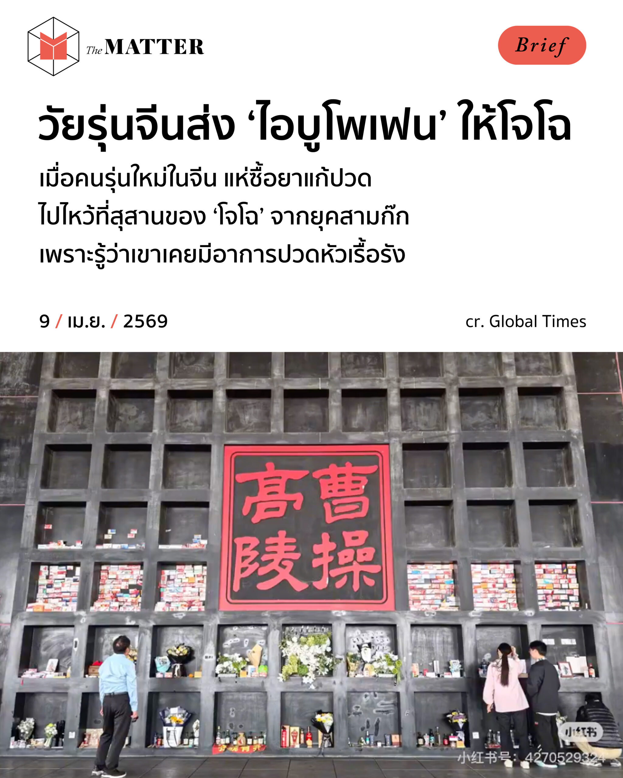 ช่วงเชงเม้งที่ผ่านมา มีคนซื้อยาแก้ปวดจำนวนมาก รวมถึงยาไอบูโพรเฟน มาไหว้สุสานของ ‘โจโฉ’ ขุนศึกคนสำคัญจากยุคสามก๊ก เพราะตามบันทึกทางประวัติศาสตร์ ชี้ว่าโจโฉมีอาการปวดศีรษะอย่างรุนแรง รวมถึงนักโบราณคดีสมัยใหม่บางคนก็เสนอว่า เขาอาจมีโรคทางทันตกรรม ที่ทำให้เกิดอาการปวดเส้นประสาท