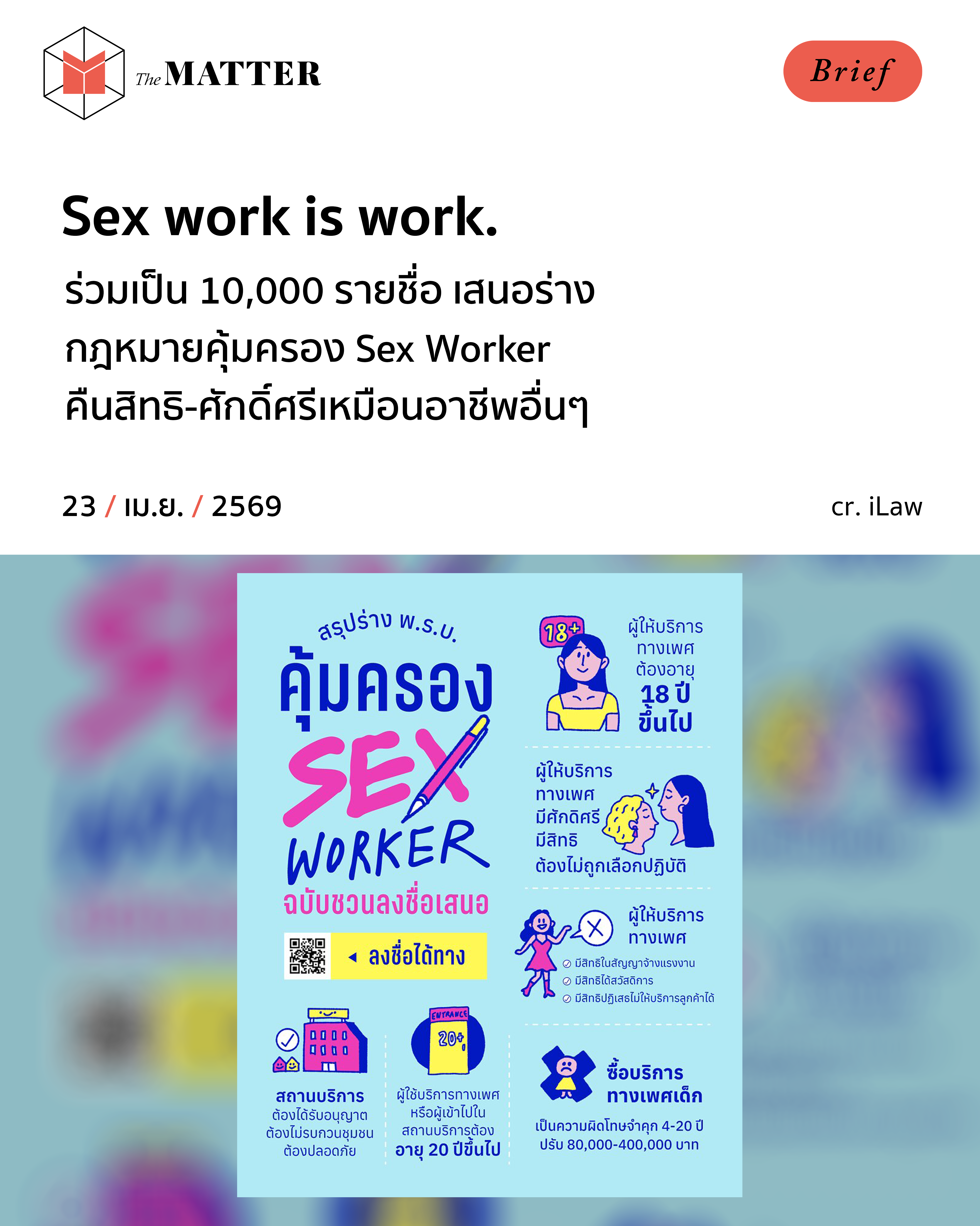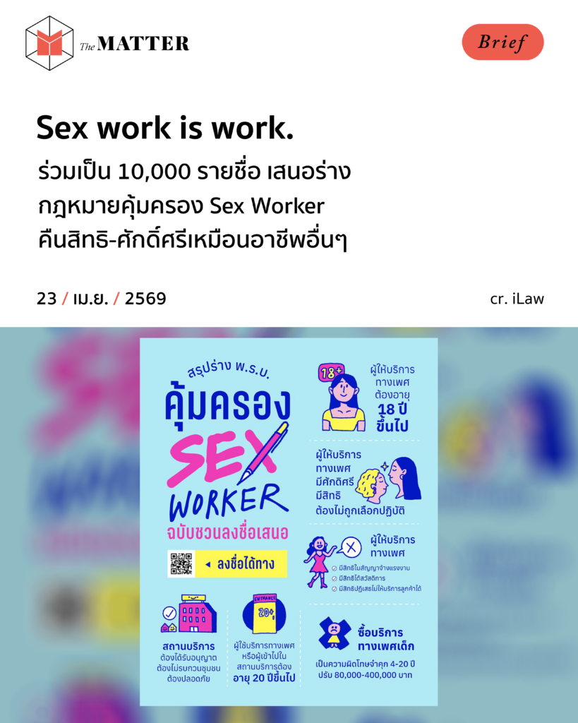 iLaw และมูลนิธิเอ็มพาวเวอร์ ชวนลง 10,000 รายชื่อ ยื่นร่าง พ.ร.บ.คุ้มครองผู้ให้บริการทางเพศ (Sex Worker) เข้าสู่การพิจารณาของสภา