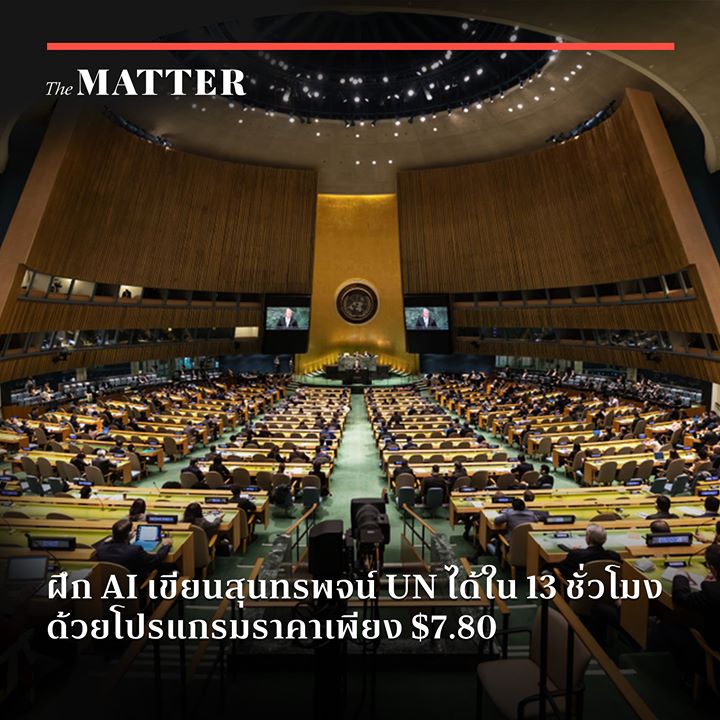 แต่ต่อไป เราอาจจะเกิดคำถามว่า นี่เป็นคำที่ ‘คน’ พูด หรือ ‘AI’ เขียนขึ้นมากันแน่ เพราะล่าสุด ทีมวิจัยจาก Global Pulse ซึ่งตั้งขึ้นโดย UN สามารถฝึก AI ให้เขียนสุนทรพจน์ที่เหมือนคนร่างให้จริงๆ สำหรับการประชุมสามัญของ UN ได้แล้ว