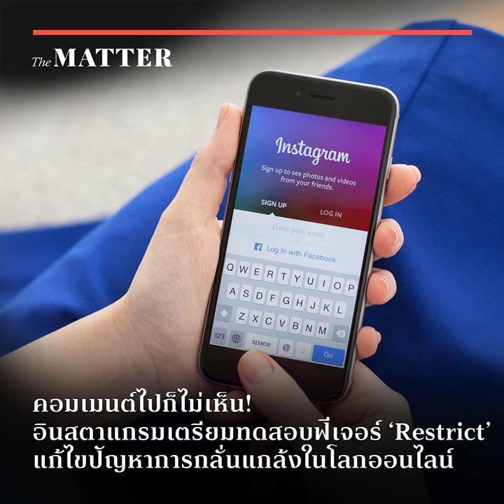 อินสตาแกรม ประกาศว่าทางทีมงานกำลังเตรียมการทดสอบฟีเจอร์ใหม่ ‘Restrict’ เพื่อแก้ปัญหาการกลั่นแกล้งบนโลกออนไลน์ หรือที่เรียกกันว่า online bullying ฟีเจอร์นี้จะเปิดให้เราซึ่งเป็นเจ้าของบัญชีผู้ใช้ สามารถเลือกแบนคอมเมนต์จากคนที่ชอบมาแสดงความเห็นเชิงไม่สร้างสรรค์ได้ โดยที่อีกฝ่ายไม่รู้ตัวด้วยซ้ำ