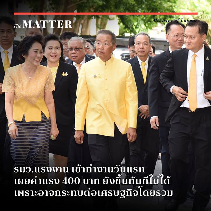 หนึ่งในกระทรวงสำคัญ ก็คือกระทรวงแรงงาน ที่หลายคนจับตาการขึ้นค่าแรงขั้นต่ำเป็น 400-425 บาท/วัน ตามนโยบายหาเสียงของพรรคพลังประชารัฐ