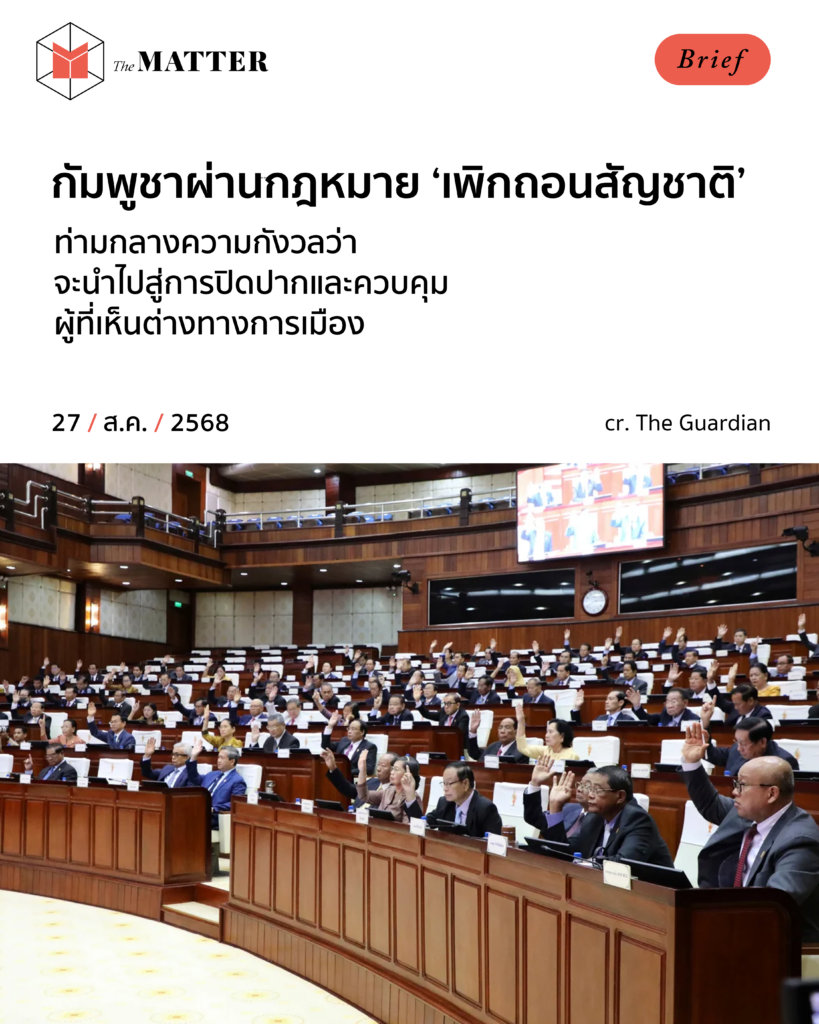 25 สิงหาคม 2568 รัฐสภากัมพูชาผ่านกฎหมายที่เปิดทางให้มี ‘การเพิกถอนสัญชาติ’ กับผู้ถูกตัดสินว่าสมรู้ร่วมคิดกับต่างชาติหรือข้อหากบฏ