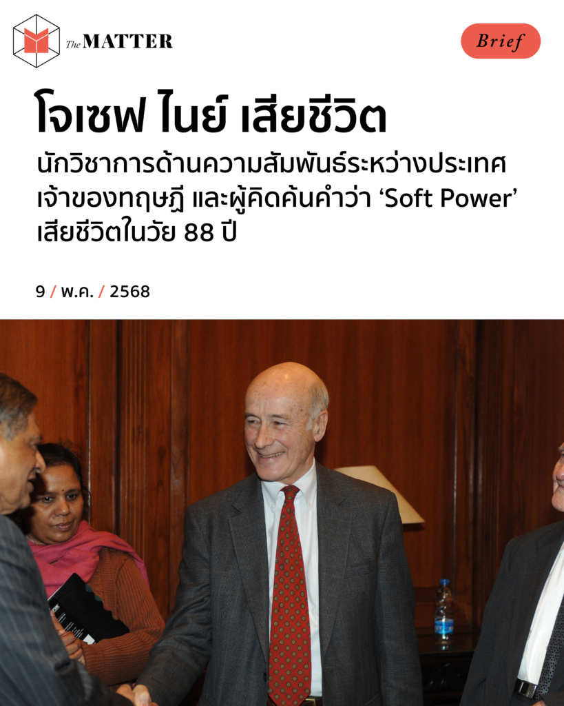 ทฤษฏี ‘Soft Power’ คือหนึ่งในทฤษฏีที่ถูกอ้างอิงในงานวิชาการด้านความสัมพันธ์ระหว่างประเทศมาอย่างยาวนาน นี่คือมรดกที่อดีตนักวิชาการจากฮาร์วาร์ดนามว่า โจเซฟ ไนย์ ที่สร้างเอาไว้ให้กับแวดวงวิชาการของโลกเรา