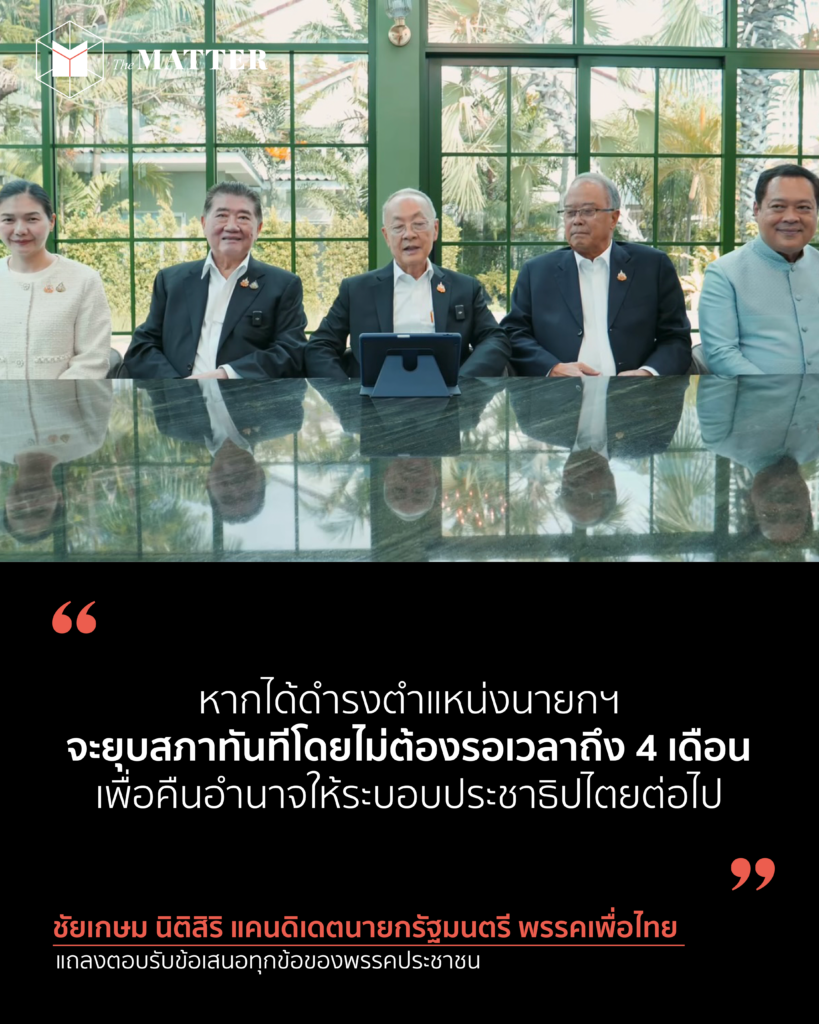 ชัยเกษม นิติสิริ แคนดิเดตนายกรัฐมนตรี พรรคเพื่อไทย แถลงตอบรับข้อเสนอทุกข้อของพรรคประชาชน