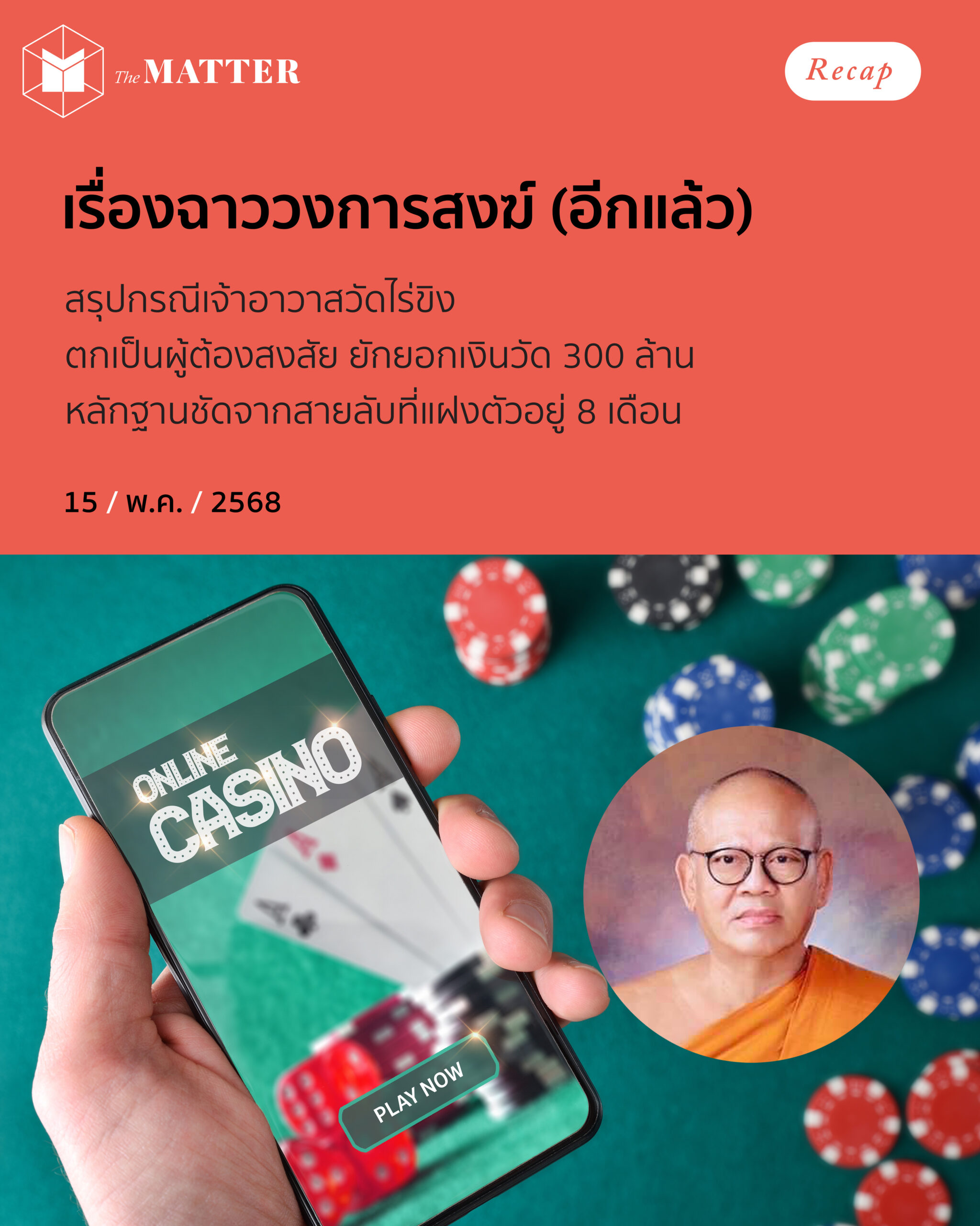 บริจาคไปแล้วเงินไปไหน? ที่อื่นยังไงไม่รู้ แต่ล่าสุดที่ ‘วัดไร่ขิง’ มีรายงานว่า เจ้าอาวาสยักยอกเงินวัดไปเล่นคาบาร่าออนไลน์กว่า 300 ล้านบาท