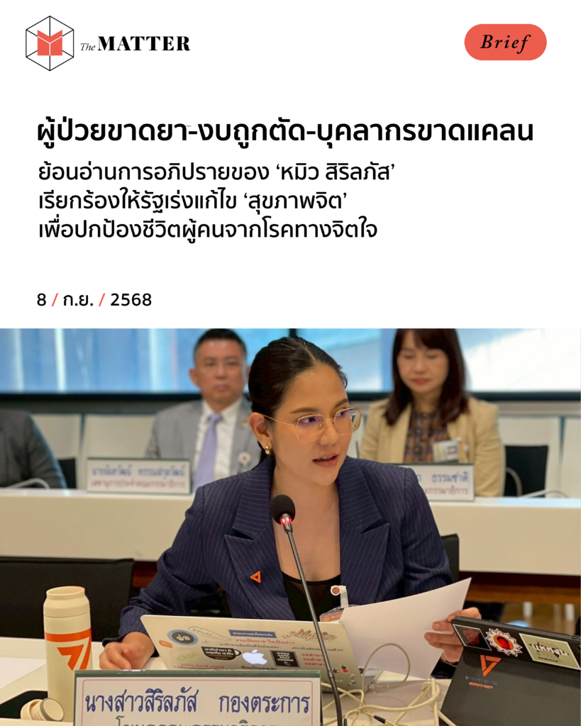 ชื่อของ ‘หมิว-สิริลภัส กองตระการ’ ปรากฎผ่านหน้าสื่อตลอดวันที่ผ่านมา รวมถึงเรื่องที่เธอเป็นหนึ่งในผู้ป่วยโรคซึมเศร้า วันนี้เราชวนทุกคนย้อนไปดูการอภิปรายของเธอ ในวันที่เธอร้องไห้ระหว่างการพูดถึงงบประมาณของการแก้ไขปัญหาสุขภาพจิตกันอีกครั้ง
