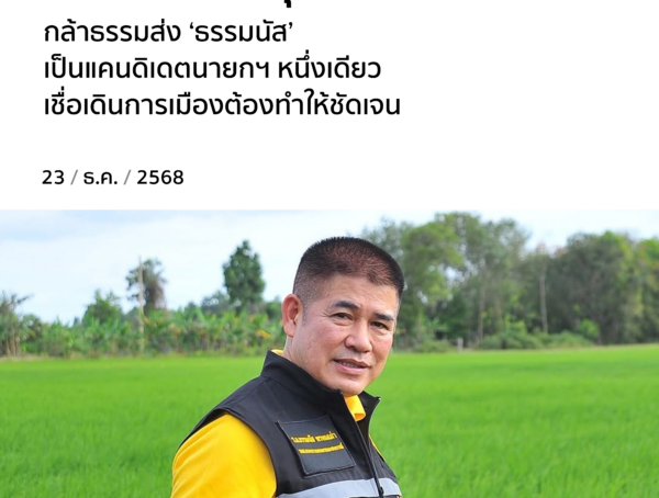 หนึ่งเดียวที่มีให้คุณ: กล้าธรรมส่ง ‘ธรรมนัส’ เป็นแคนดิเดตนายกฯ หนึ่งเดียว เชื่อเดินการเมืองต้องทำให้ชัดเจน