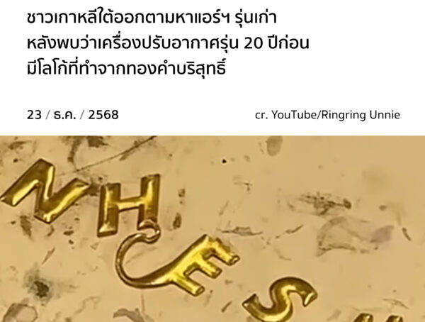 ชาวเกาหลีใต้ออกตามหาแอร์ฯ รุ่นเก่า หลังพบว่าเครื่องปรับอากาศรุ่น 20 ปีก่อน มีโลโก้ที่ทำจากทองคำบริสุทธิ์