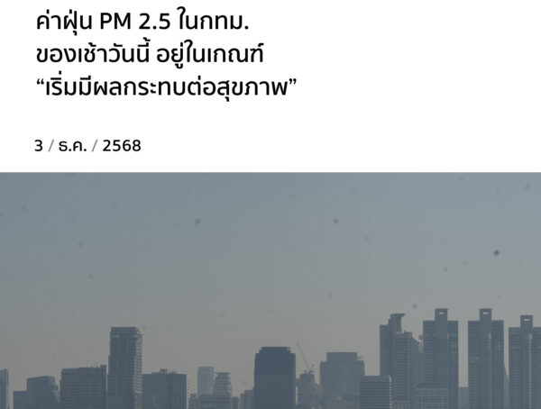 ค่าฝุ่น PM 2.5 ใน กทม.ของเช้าวันนี้ อยู่ในเกณฑ์ “เริ่มมีผลกระทบต่อสุขภาพ”
