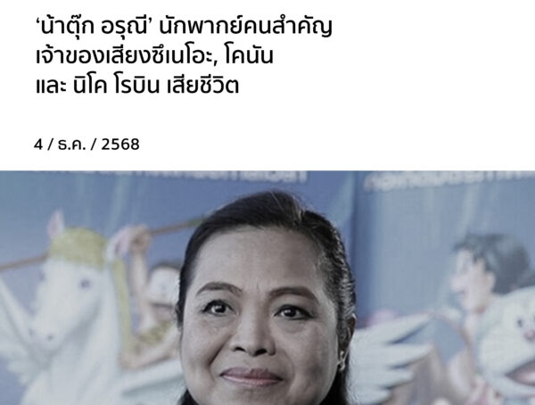 ‘น้าตุ๊ก อรุณี’ นักพากย์คนสำคัญ เจ้าของเสียงซึเนโอะ, โคนัน และ นิโค โรบิน เสียชีวิต