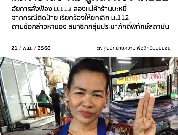 อัยการสั่งฟ้อง ม.112 สองแม่ค้าร้านบะหมี่ จากกรณีติดป้าย เรียกร้องให้ยกเลิก ม.112