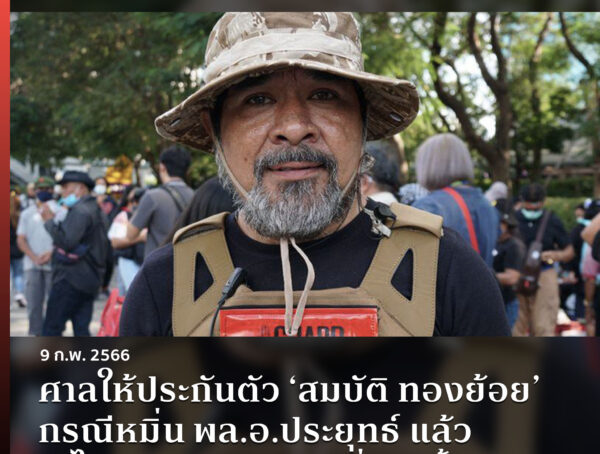ศาลให้ประกันตัว ‘สมบัติ ทองย้อย’ กรณีหมิ่น พล.อ.ประยุทธ์ แล้ว จะได้รับการปล่อยตัวค่ำวันนี้