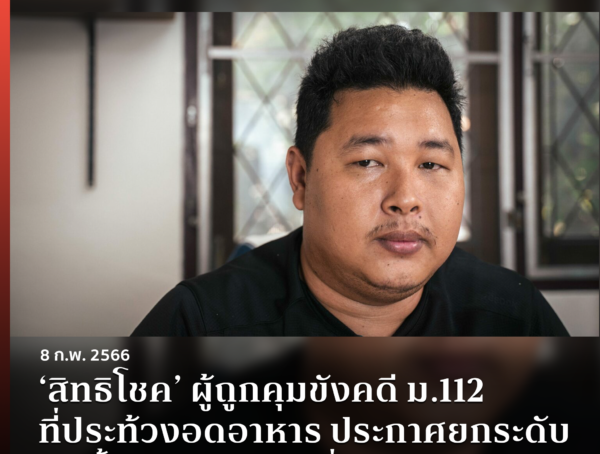 ‘สิทธิโชค’ ผู้ถูกคุมขังคดี ม.112 ที่ประท้วงอดอาหาร ประกาศยกระดับอดน้ำและอดนอน เพื่อสิทธิประกันตัว