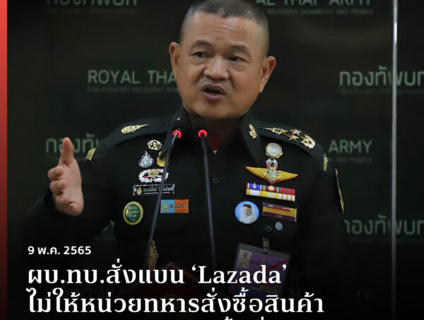 ผบ.ทบ.สั่งแบน ‘Lazada’ ไม่ให้หน่วยทหารสั่งซื้อสินค้า รถส่งของห้ามเข้าพื้นที่ทหาร