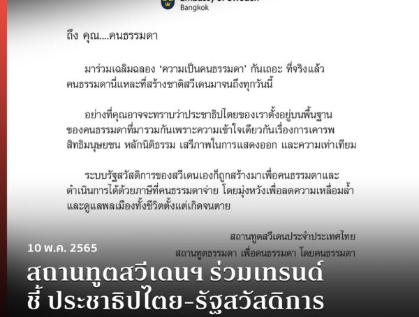 สถานทูตสวีเดนฯ ร่วมเทรนด์ ชี้ ประชาธิปไตย-รัฐสวัสดิการ ก็เกิดมาจากคนธรรมดา