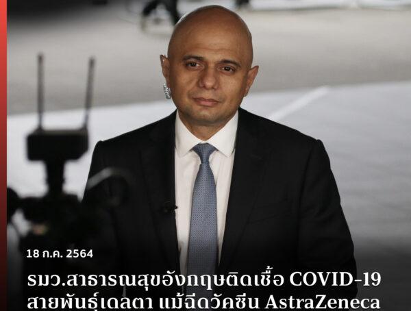 รมว.สาธารณสุขอังกฤษติดเชื้อ COVID-19 สายพันธุ์เดลตา แม้ฉีดวัคซีน AstraZeneca ครบ 2 เข็ม