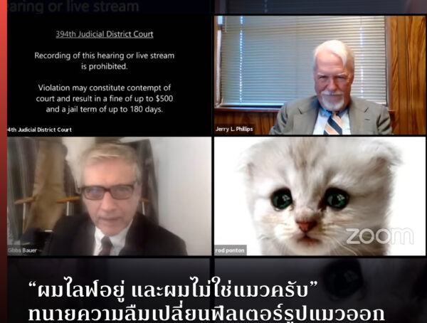 “ผมไลฟ์อยู่ และผมไม่ใช่แมวครับ” ทนายความลืมเปลี่ยนฟิลเตอร์รูปแมวออก ขณะฟังคำพิจารณาจากศาลผ่าน Zoom