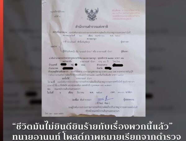 “ชีวิตมันไม่ยินดียินร้ายกับเรื่องพวกนี้แล้ว” ทนายอานนท์ โพสต์ภาพหมายเรียกจากตำรวจ ถูกแจ้งข้อหา ม.112 และ พรบ.คอมฯ