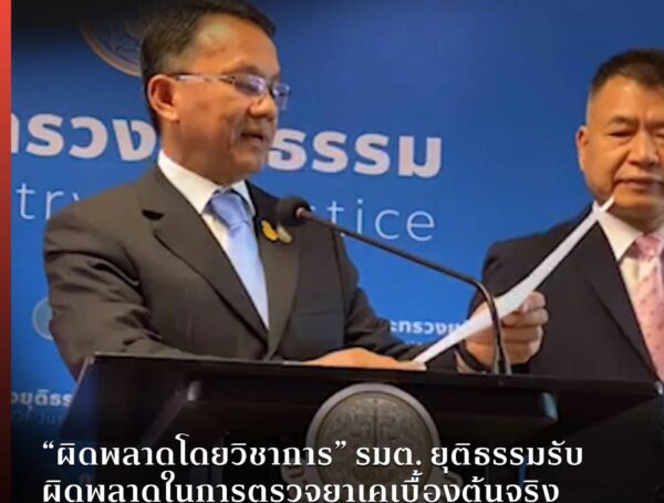 “ผิดพลาดโดยวิชาการ” รมต.ยุติธรรมรับผิดพลาดในการตรวจยาเคเบื้องต้นจริง