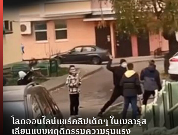 โลกออนไลน์แชร์คลิปเด็กๆ ในเบลารุส เลียนแบบพฤติกรรมความรุนแรงจากการปราบม็อบ ในสนามเด็กเล่น