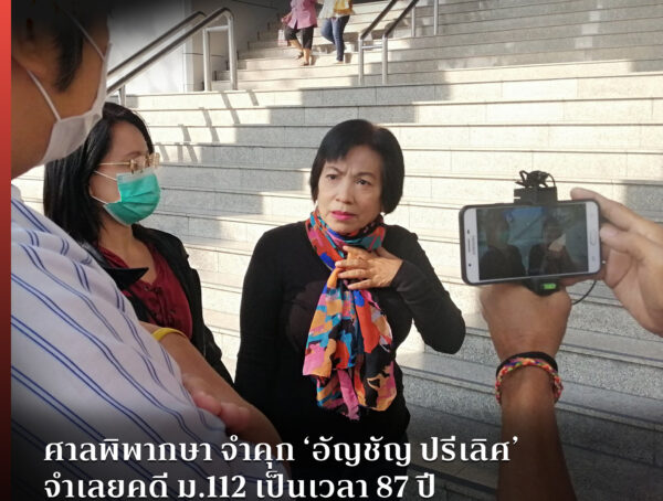 ศาลพิพากษา จำคุก ‘อัญชัญ ปรีเลิศ’ จำเลยคดี ม.112 เป็นเวลา 87 ปี แต่ลดโทษเหลือ 43 ปี 6 เดือน