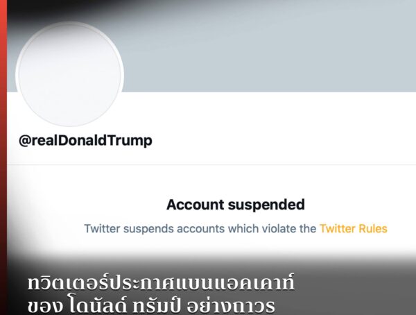 ทวิตเตอร์ประกาศแบนแอคเคาท์ของ โดนัลด์ ทรัมป์ อย่างถาวร หลังเหตุจลาจลในรัฐสภาสหรัฐฯ