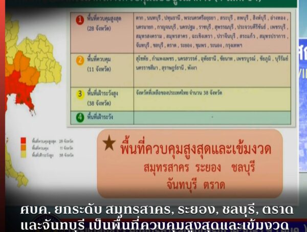 ศบค. ยกระดับ สมุทรสาคร, ระยอง, ชลบุรี, ตราด และจันทบุรี เป็นพื้นที่ควบคุมสูงสุดและเข้มงวด