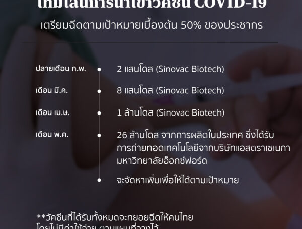 เปิดไทม์ไลน์ความคืบหน้าการนำเข้าวัคซีน COVID-19 ในไทย พร้อมฉีดให้ประชาชนฟรีโดยไม่มีค่าใช้จ่าย