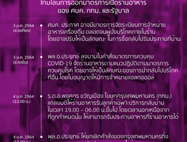 นั่งกินร้าน หรือต้องซื้อกลับบ้าน ? ไทม์ไลน์การออกมาตรการเปิดร้านอาหารของ ศบค. กทม.และรัฐบาล