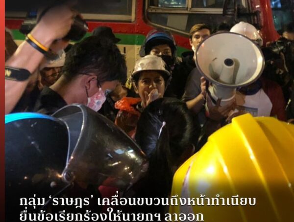 กลุ่ม ‘ราษฎร’ เคลื่อนขบวนถึงหน้าทำเนียบ ยื่นข้อเรียกร้องให้นายกฯ ลาออก และต้องตอบรับข้อเรียกร้องภายใน 3 วัน