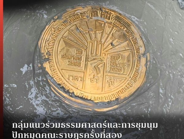 กลุ่มแนวร่วมธรรมศาสตร์และการชุมนุมปักหมุดคณะราษฎรครั้งที่สอง ลงบนพื้นสนามหลวง