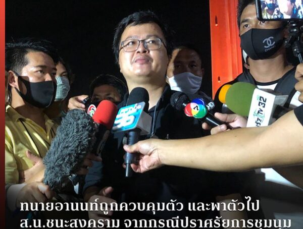 ทนายอานนท์ถูกควบคุมตัว และพาตัวไป ส.น.ชนะสงคราม จากกรณีปราศรัยการชุมนุม #เสกคาถาปกป้องประชาธิปไตย