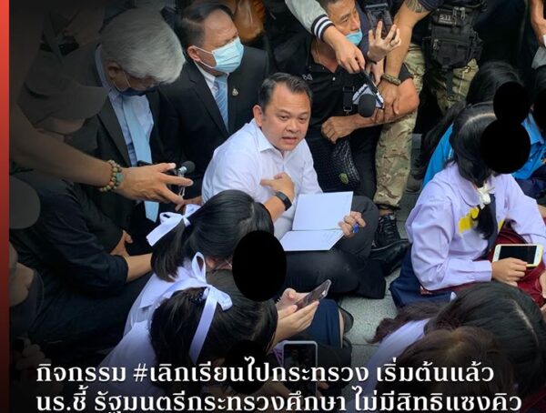 กิจกรรม #เลิกเรียนไปกระทรวง เริ่มต้นแล้ว นร.ชี้ รัฐมนตรีกระทรวงศึกษาไม่มีสิทธิแซงคิว ถ้าจะพูดหรือปราศรัย ต้องต่อท้ายแถว
