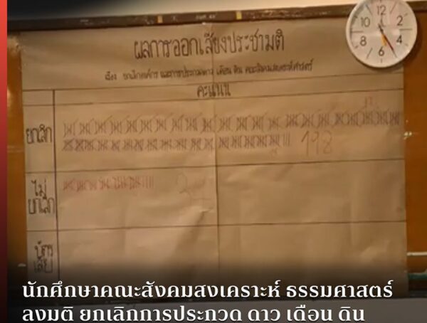 นักศึกษาคณะสังคมสงเคราะห์ ธรรมศาสตร์ ลงประชามติ ยกเลิกการจัดประกวด ดาว เดือน ดินของคณะ ด้วยคะแนน 85.34% ของผู้มาใช้สิทธิ
