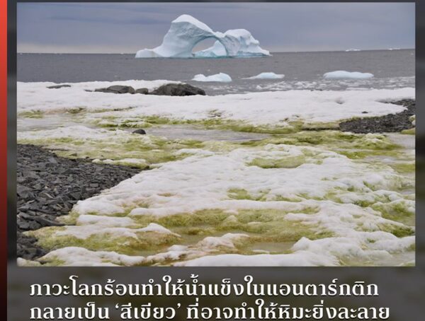 ภาวะโลกร้อนทำให้น้ำแข็งในแอนตาร์กติกกลายเป็น ‘สีเขียว’ ที่อาจทำให้หิมะยิ่งละลาย และกระทบความเป็นอยู่ของเพนกวิน